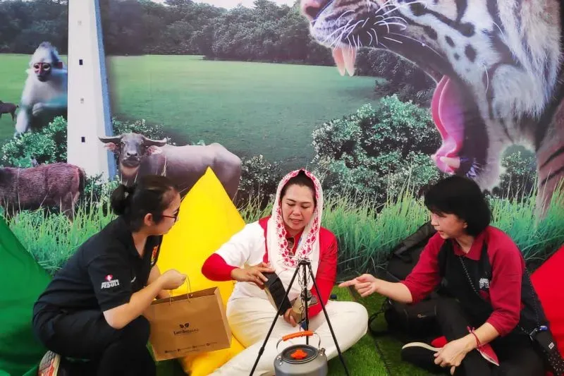 Belum lagi berbagai booth yang menyuguhkan jajanan hingga peralatan panjat tebing. Paling menarik ada juga booth Artha Graha yang menghadirkan suasana natural konservasi. Ketua Umum FPTI, Yenny Wahid juga mengunjungi area tersebut.