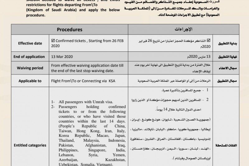 "Harapan kami, mudah-mudahan 14 Maret 2020 penerbangan ke Arab Saudi sudah dibuka lagi," tuturnya,seperti dikutip antara.