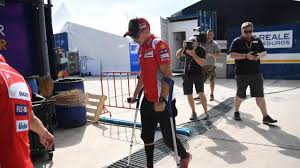Pembalap Ducati, yang mengalami cedera kaki dari Aragon Grand Prix sebelumnya di Spanyol, dibawa ke rumah sakit untuk scan dan mengatakan dia terluka pada pergelangan tangannya.