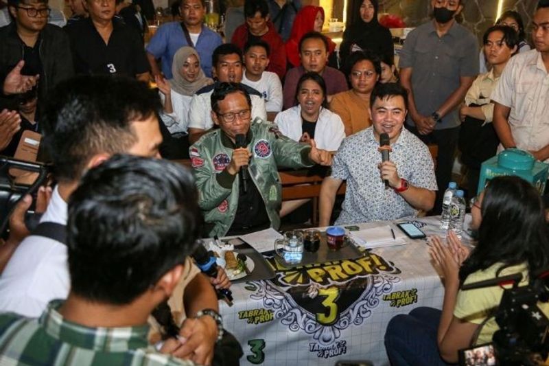 Pada acara tersebut, Mahfud mendapatkan pertanyaan dari hadirin mengenai tanggapannya atas saran dari pasangannya, Calon Presiden RI Ganjar Pranowo agar Mahfud mundur dari menteri untuk menghindari konflik kepentingan.