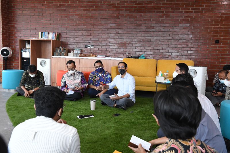 IVOOX.id, Jakarta - Menteri Pendidikan, Kebudayaan, Riset, dan Teknologi (Mendikbudristek) Nadiem Anwar Makarim bertemu langsung dengan perwakilan berbagai pengurus Badan Eksekutif Mahasiswa (BEM), di kantor Direktorat Jenderal Pendidikan Tinggi, Riset, dan Teknologi, Senayan, Jakarta, Jumat (17/9).