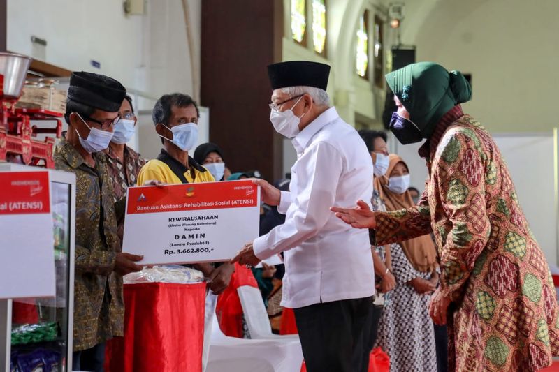 Selain itu, juga diberikan bantuan ATENSI untuk dua orang penyandang disabilitas. “Ada yang disabilitas netra. Dia memang sudah rutin melakukan pijat. Tapi kita coba berdayakan istrinya dengan memberikan usaha kelontong untuk istrinya,” kata Mensos.