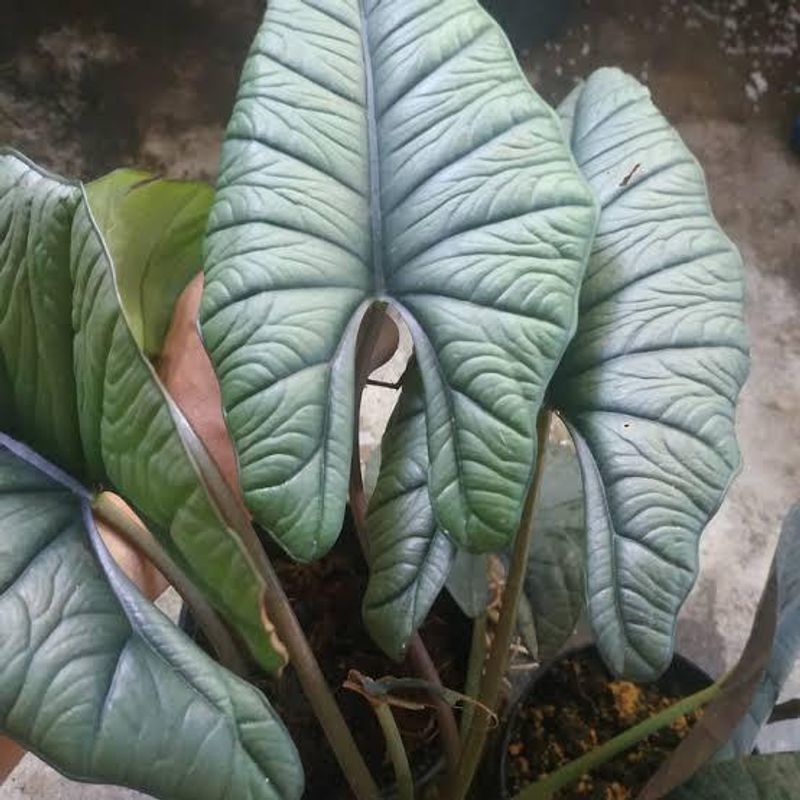 4. Alocasia Amazonica, ciri-ciri daunnya datar dengan tulang daun tegas, pinggiran berbordir.